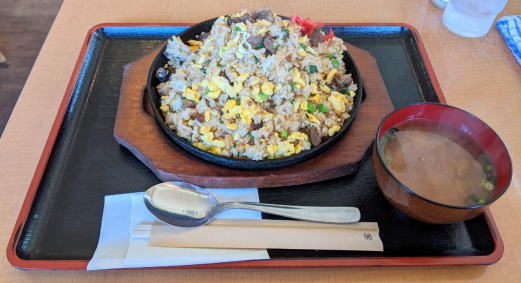 すじ肉がゴロゴロと入った食べ応えのあるチャーハン。 鉄板で提供してくれるので、 最後まで温かいし、カリッとした食感の、いわゆる “おこげ” も味わえます。 味噌汁が付くのも嬉しい。 |
