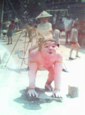 高木ブーさんではありません(笑)。 「背中へどうぞ」 と、やさしい鬼です。 僕も、 45年前に このとおり乗らせてもらいました。 けど、 今回は乗りませんでした。 だって、 もう、大人になっちゃって、重いですから、僕。 やさしさには、やさしさで返します(笑)。 |