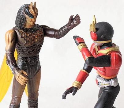 クウガは、 基本形態であるマイティーフォーム (先述のライダーヒーローシリーズやコレクタブルソフビフィギュアの姿)のほかにも、 ドラゴンフォームやペガサスフォームなど様々な形態へと、 その姿と能力を変化させられますが、 このアルティメットフォームは、すべてのフォームを上回る戦闘能力を備えた、究極の形態。 その強大な力と引き換えに心が憎しみの闇に支配され、 理性を持たぬ戦士と化す危険性がありましたが、 五代はそれを精神力で克服して、自我を保ったまま変身する事が出来ました。 理性を持たぬ戦士(本能で闘うだけの化け物)にならずに済んだは、 先述の、 8歳の時にネパールの山で遭難しかけた際に 笑顔で励ましてくれたネパール人の男の子から学んだ、 辛い時に笑っていられる男はカッコいい(本当に強い男は、心の強い男・優しい男) っていう価値観が、 信念として、五代の人間性の基礎となっていたからだ、と僕は思います。 |