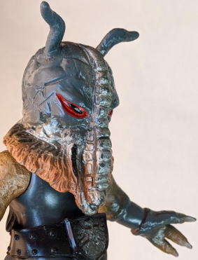・・・ただ、 そういう、残念さが、 実は “醍醐味”、つまり “堪らない魅力” だったりするところが、昭和ソフビの面白いところ、なンですよね。 実物の怪獣・怪人をそっくりそのまま完璧にコピーしていないところに、 夢が隠れている、というか、楽しみが潜んでいる、というか、ちょうど俳句の行間のような “想像する余地” が、残されてるンです。 世代が違う人は、あまりピンと来ないかもしれませんが、 僕らは、そういう “造形の妙” みたいなものを、幼心に、理屈でなく感覚で理解していたンだと思うンですよね。 実際にそれらの人形で自由に夢や空想を膨らませて遊び、胸をときめかせてましたから・・・。 なので、 その、気の利かない、なんだかちょっと鈍臭い感じ、 “孫の手” の話に掛けて言うと、 “痒いところに手が届かないもどかしさ” ・・・みたいなものがある懐かしの造形が、 大人になった今、とても麗しく、そして、切ないまでに愛おしいのであります。 ・・・ソフビの奥深いところです。 ![]() |
